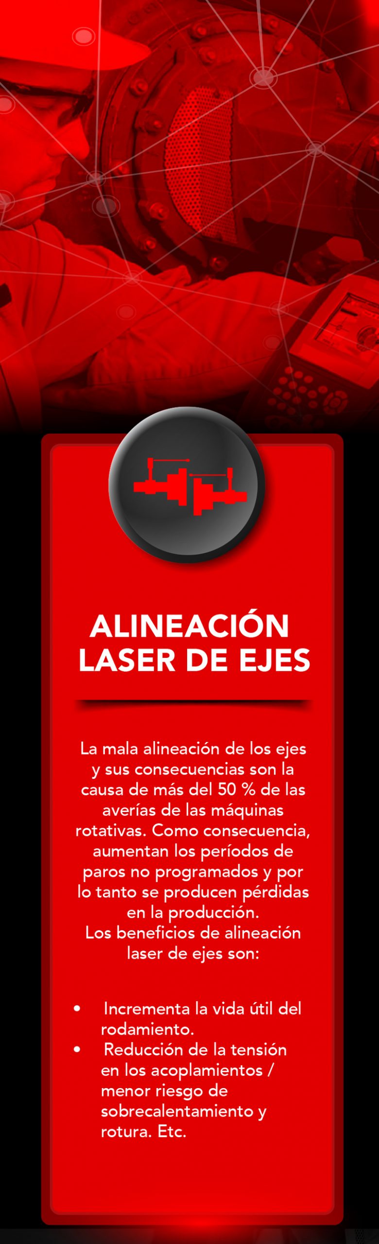 ALINEACIÓN LASER DE EJES. La mala alineación de los ejes y sus consecuencias son la causa de más del 50 % de las averías de las máquinas rotativas. Como consecuencia, aumentan los períodos de paros no programados y por lo tanto se producen pérdidas en la producción.